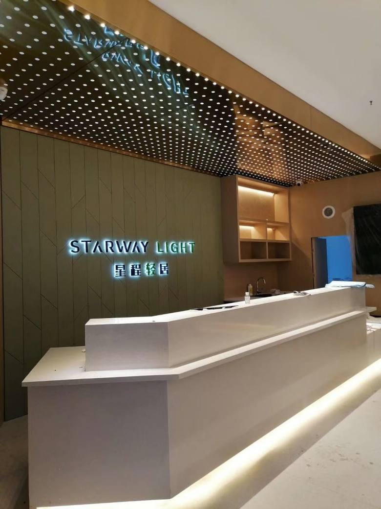比如像本次的西安星程轻居酒店,从酒店前台的定制以及酒店餐桌椅和客房家具,博菲克都能根据客户的不同需求去一对一进行设计,不仅仅能省去不必要的费用开支,同时也避免了部分中间商以次充好的行为。