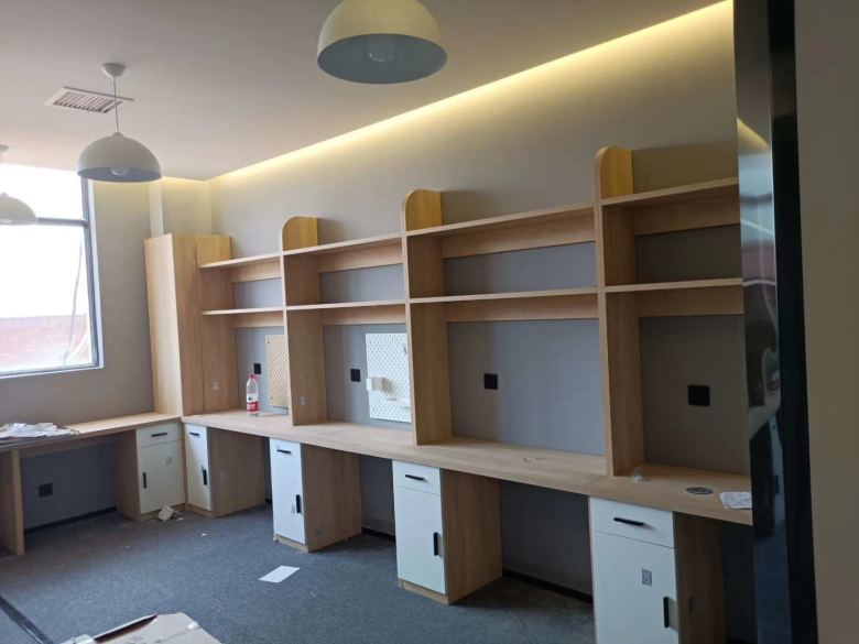 我厂为铁一中补习学校提供公寓床定制,备有书桌架、抽屉柜、衣柜和其他储物柜等家具定制。
