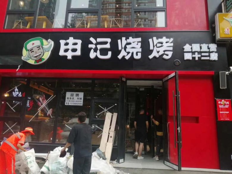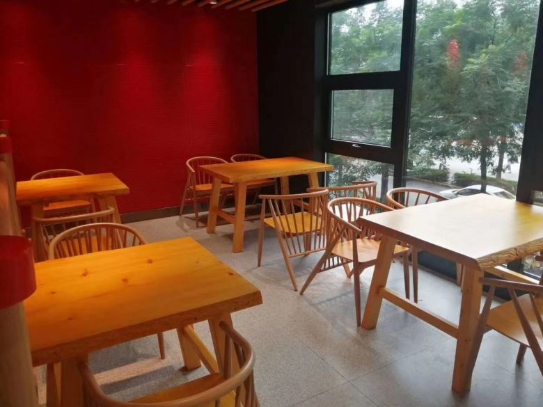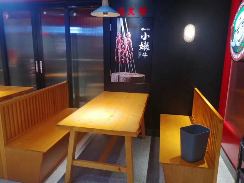 西安申记烧烤店所有餐桌椅卡座均采用实木制作而成,与店面装修风格融为一体,凸显不一样的特色就餐环境。
