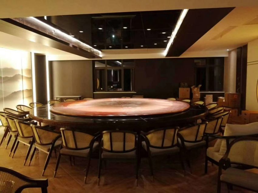 项目介绍:唐安餐饮是一家主要承接宴会、婚礼宴席的餐厅,装修豪华。装修期间,西安博菲克家具厂负责餐厅家具的生产。除了宴会大厅餐桌椅以外,客户需要定做包厢大圆桌,其中又包括大理石电动餐桌和全实木电动餐桌,家具设计要求与装修风格一致,下面结合实拍图,让大家领略一下我厂的餐桌椅生产技术水平。