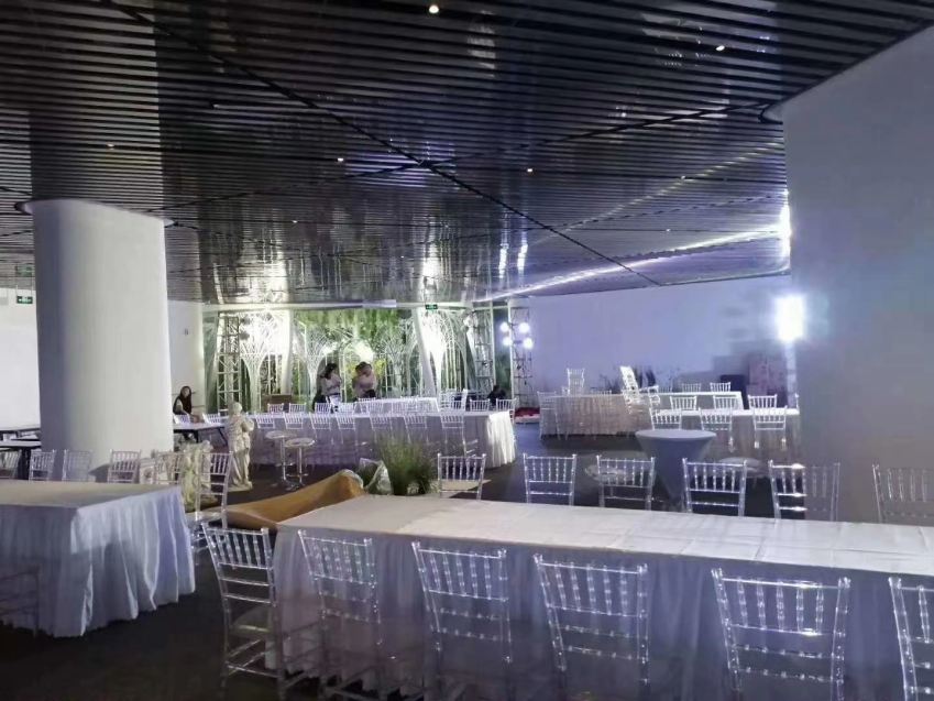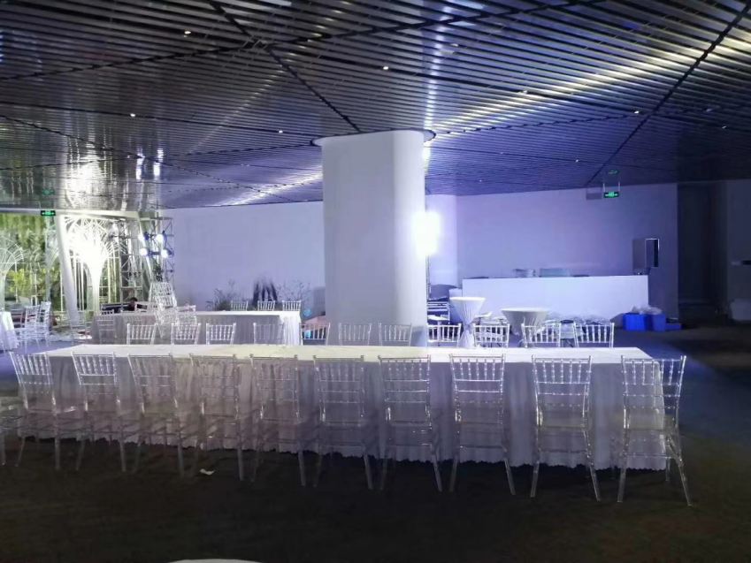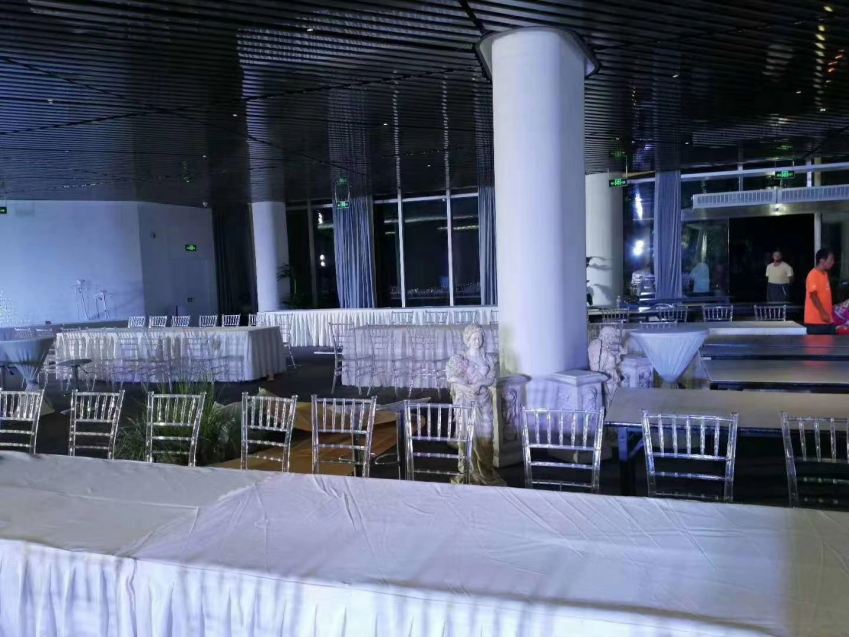 这是延安某酒店宴会大厅在西安博菲克家具厂定做的一批餐桌椅,图片是在交货现场实拍。