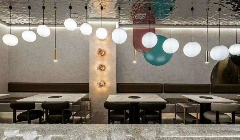 除了在装修上重金打造外,火锅桌家具上投资人也是格外大方。所有火锅桌均选用高档的岩板台面,质感大气,彰显非凡。餐椅采用星级酒店布艺沙发椅,超级舒适;卡座沙发使用国内领先的优质皮革和布料,结合实木框架,拼接出完美的卡座沙发。