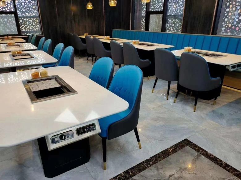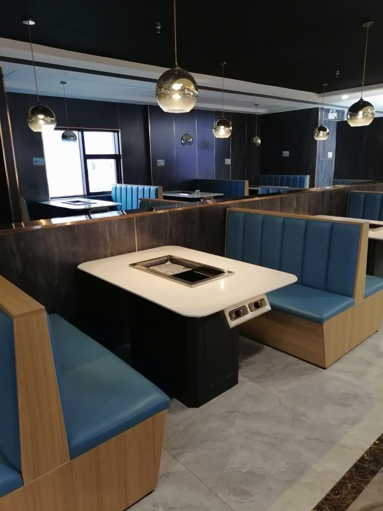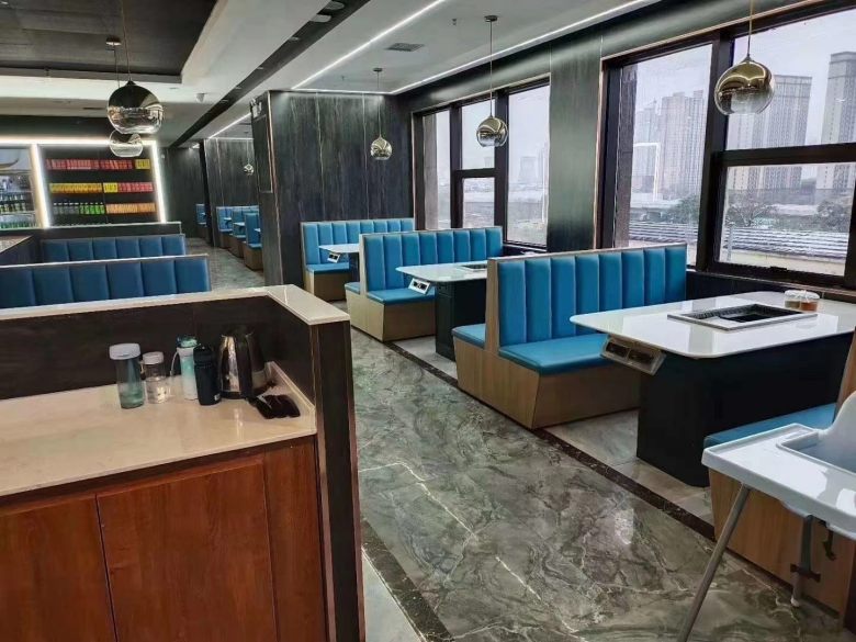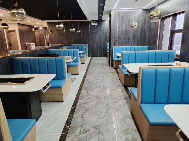 西安某餐厅涮烤一体桌卡座沙发交货实拍