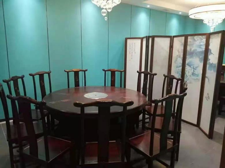 这家名叫汤城火锅店的装修风格为中式风格,因此,在搭配火锅桌椅的时候,设计师推荐使用中式实木火锅桌,使得整个火锅店充满了浓浓的中国风。