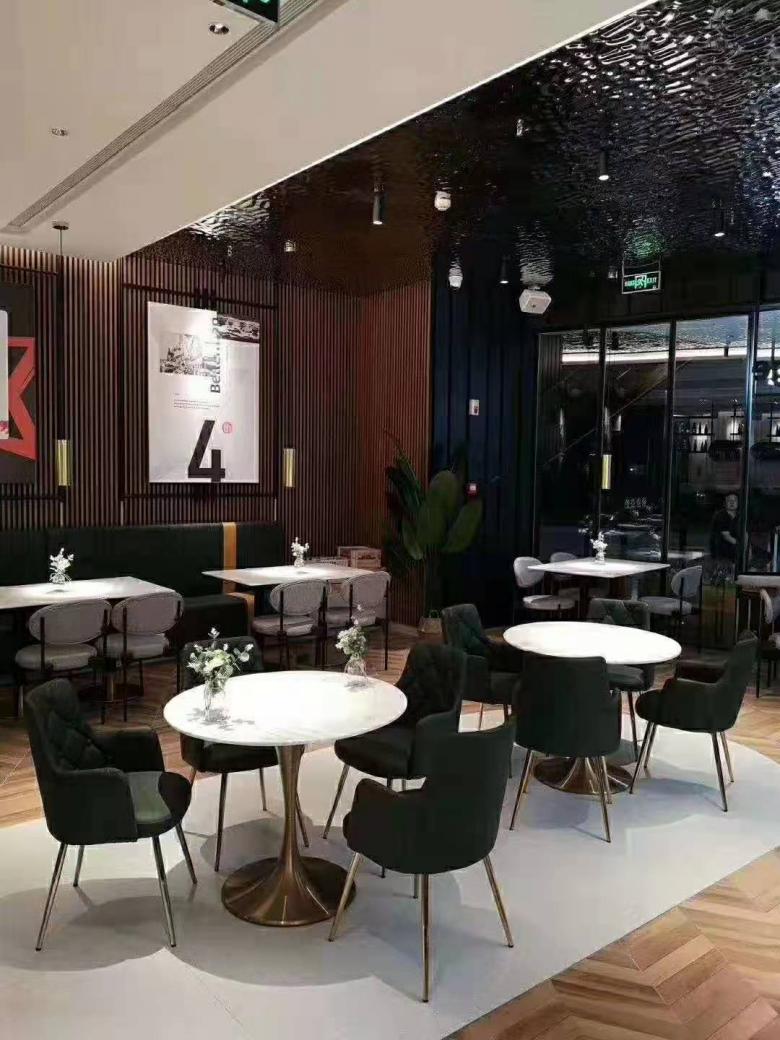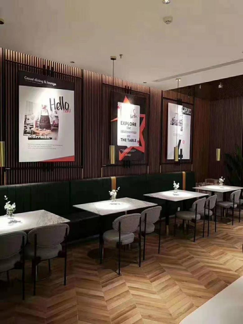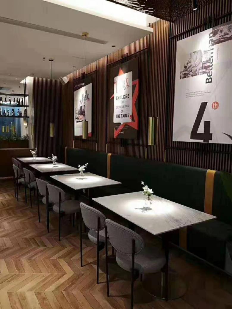西安意风小镇西餐厅就属于后者。客户清楚自己店面的需求,因此,对于西安餐桌椅批发市场里面的廉价餐桌椅,她压根就没有考虑。而我厂业务经理在介入这个项目之后,通过多次沟通,明白了客户的真实需求。李总喜欢轻奢风格的餐桌,恰恰在展厅里有一款简约风格的岩板餐桌瞬间捕获了她的心,这款岩板桌子非常大气有质感,李总毫不犹豫的就选定了它!后面,李总也看上了我厂摆放的餐厅卡座沙发样品,这是一款特别流行的高背板款式,是西餐厅里面使用最多的款式了。