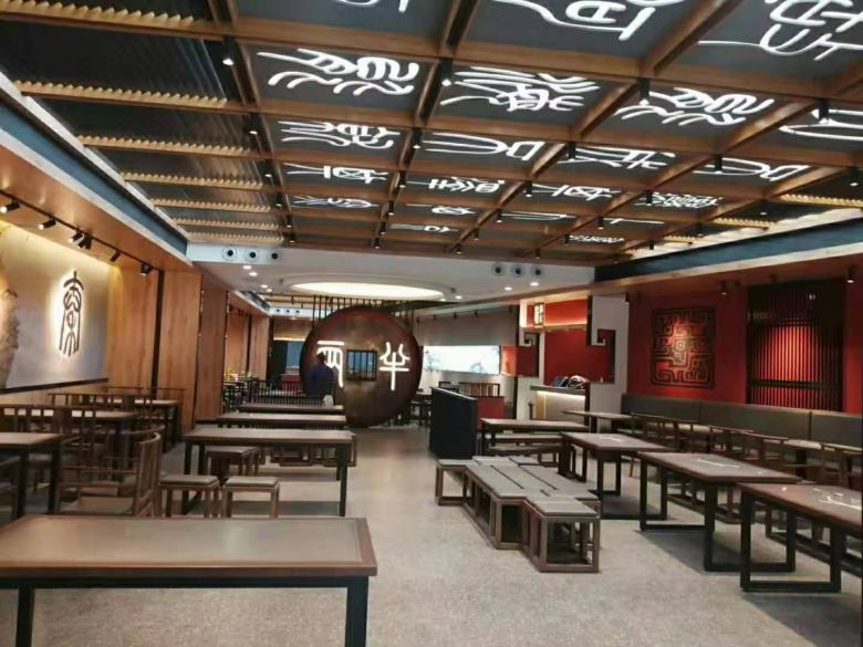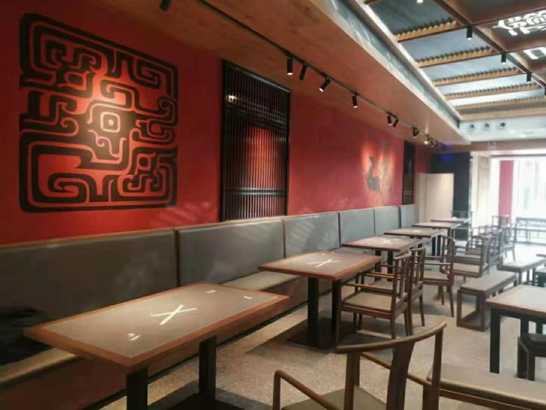 1、餐桌椅及卡座沙发颜色要求一致,整个风格偏向于沉稳,体现出了浓浓的历史氛围元素。