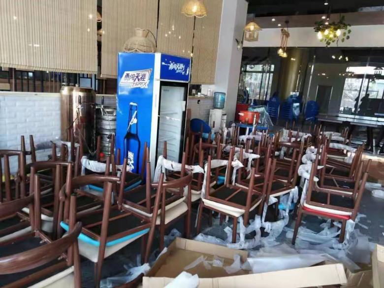 西安华鑫天悦城蠔门虾王饭店餐桌椅交货现场
