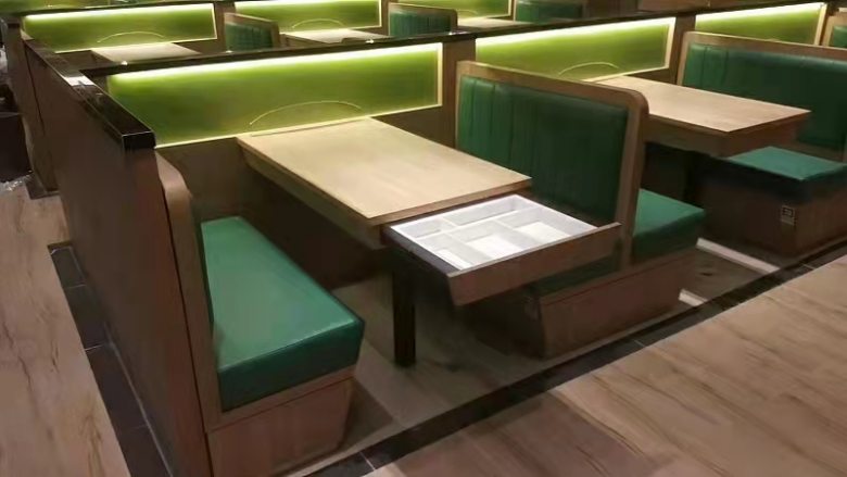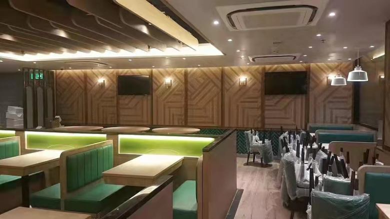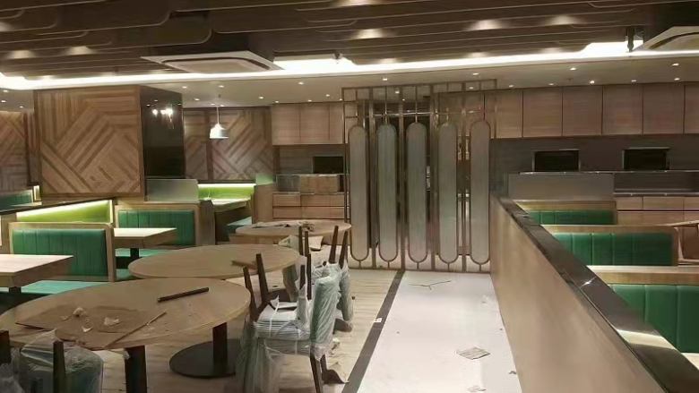 西安小寨悦香江港式茶餐厅定制桌椅卡座沙发成功交付