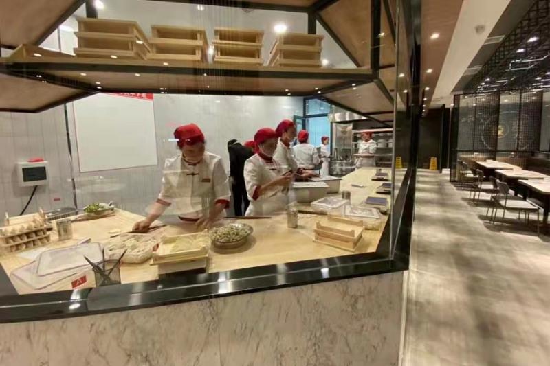庆阳饺满天下品牌连锁餐饮,由西安餐桌椅厂家强势品牌博菲克完成卡座沙发、调料台、大理石餐桌、餐椅等整店家具定制,并在预计时间内顺利交付完工。助力品牌餐饮,让餐厅更有情调,博菲克一直坚守着“品质为王、服务为皇”的经营宗旨,是百家知名餐饮设计公司极力推荐的家具合作商。