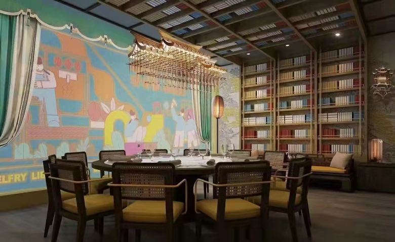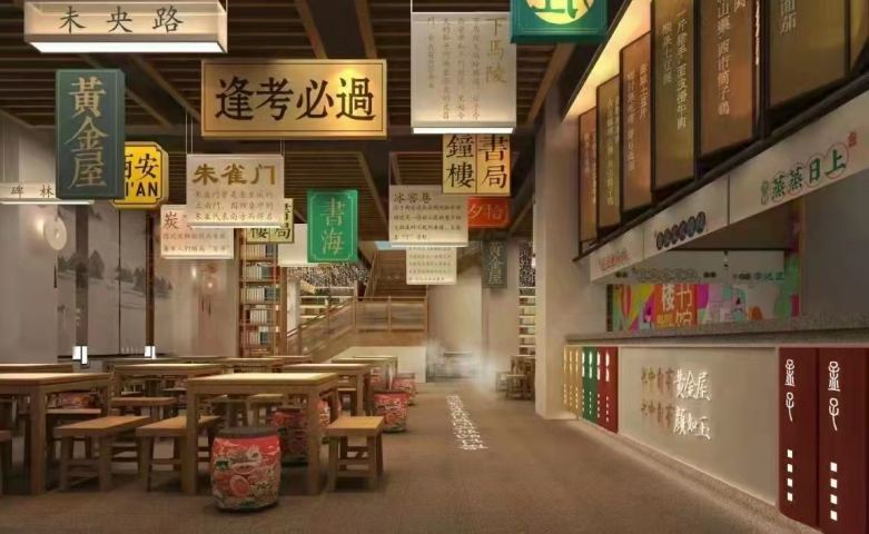 西安长安大排档之钟楼图书馆店餐饮桌椅定制案例