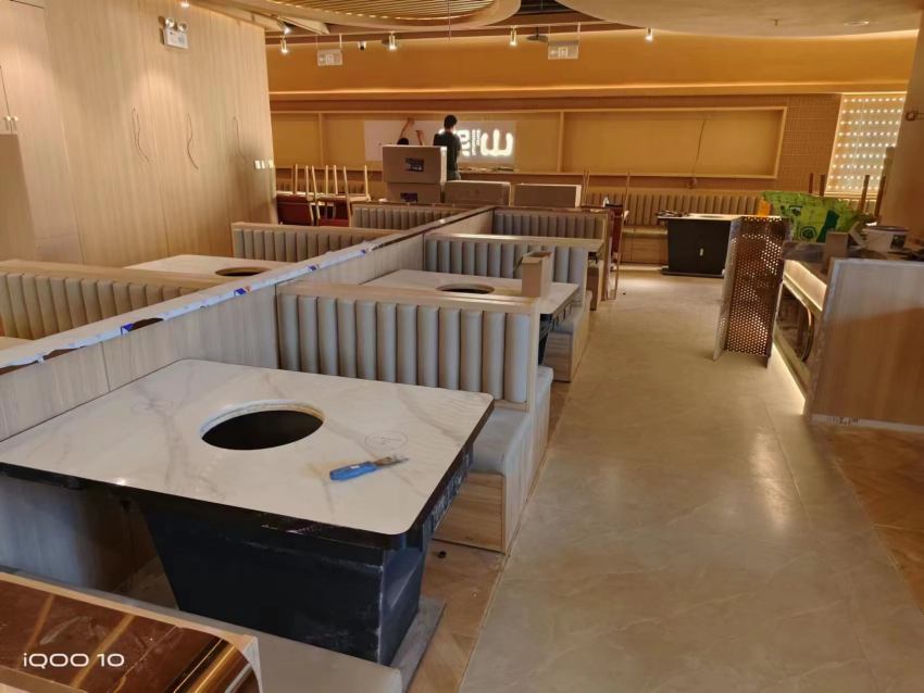 西安汉熙山料理级自助烤肉餐厅餐桌椅及沙发卡座交货完成