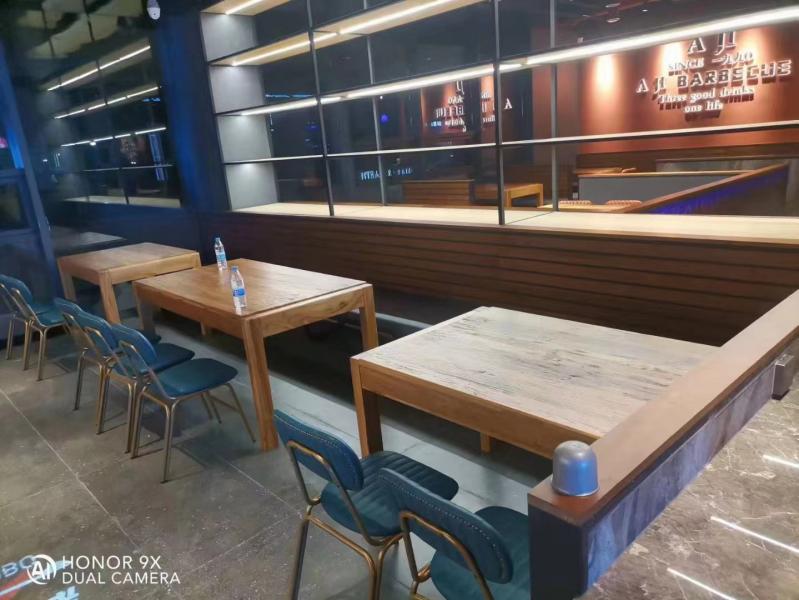 话不多说,做工如何大家可以通过我们工作人员在阿记烧烤安装后拍摄的餐桌椅照片自己去看,想进一步感受博菲克家具厂的品质,欢迎前往阿记烧烤山阳店或工厂展厅实际体验。