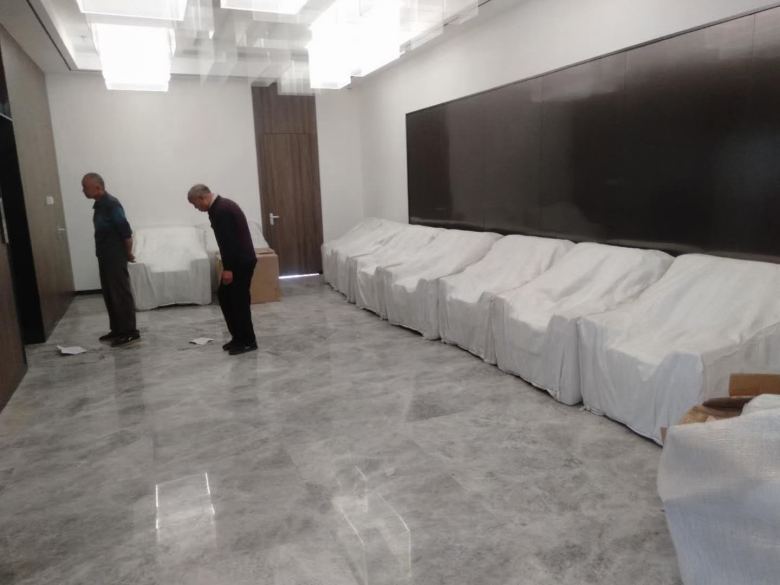 我厂为西安某艺术馆量身定做的会客厅沙发全部完毕,下图为小编拍摄的工人抵达现场进行安装的照片。