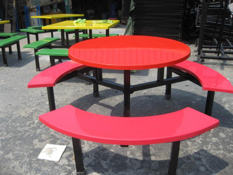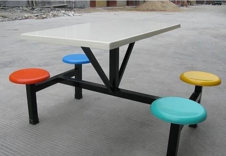 餐桌椅分类:按种类可以分为带靠背和不带靠背两种。按材质分可分为不锈钢钢材质;防火板材质和玻璃钢材质。按座位分可以分为两人位、四人位、六人位和八人位、十人位。按颜色分可分为:天蓝色凳面、橘红色凳面、军绿色凳面。按凳面材质分可以分为:玻璃钢材质和真空吹塑材质。