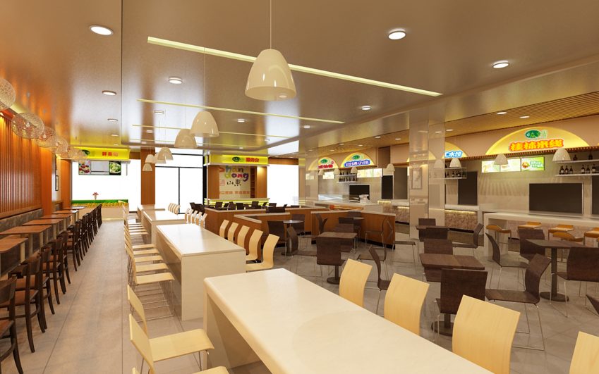 食堂餐厅和西餐厅、咖啡厅不同,它是一个讲究快节奏的地方,需要给人一种简洁、明快的感觉。因此食堂餐桌椅在款式上都是以简约设计为主流设计风格。食堂桌椅在设计上一般不会选用过多的颜色,大多都是纯色淡色设计,而在造型上则会以流畅的弧形线条来突出明快感。