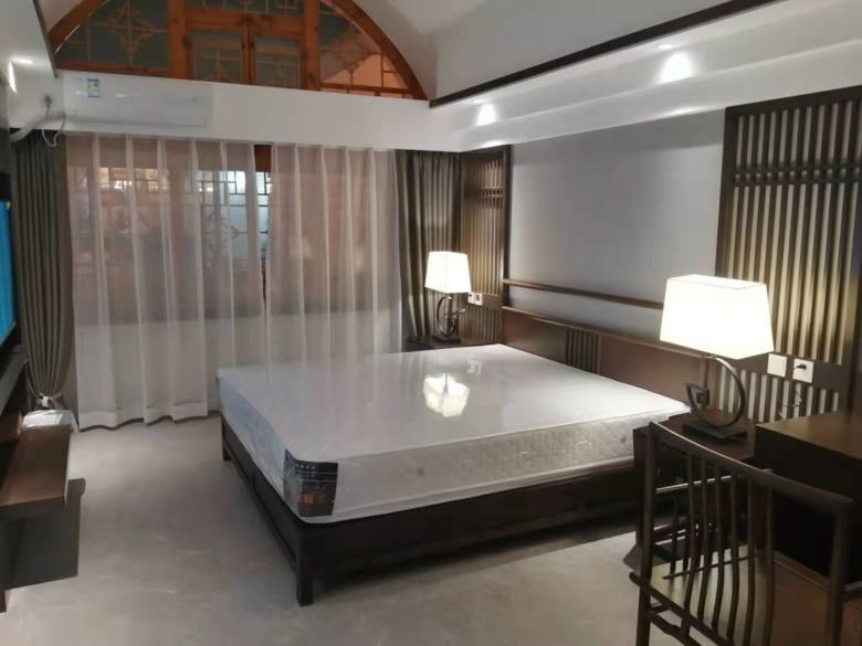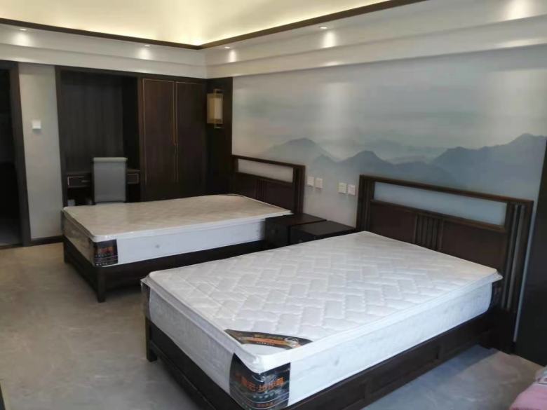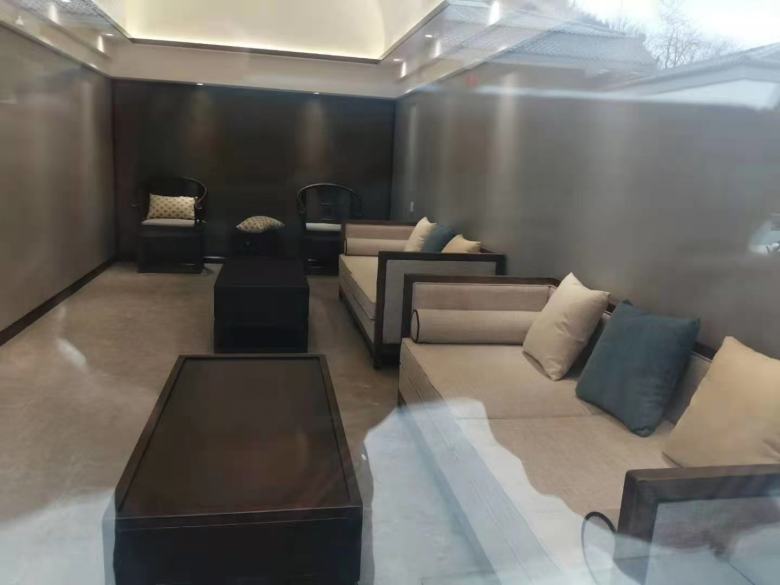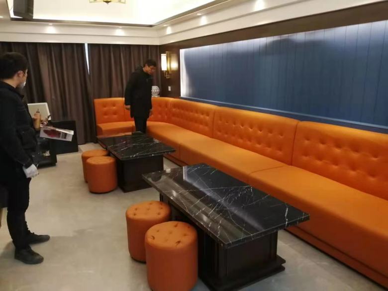 经过沟通后,设计师明白了客户的需求,客房的装修以中式风格为主,酒店家具也以新中式设计为主,包括酒店床、酒店沙发、酒店办公桌椅、酒店包厢餐桌椅。另外,该民宿酒店还配备了KTV,因此,也需要定做KTV沙发和茶几。