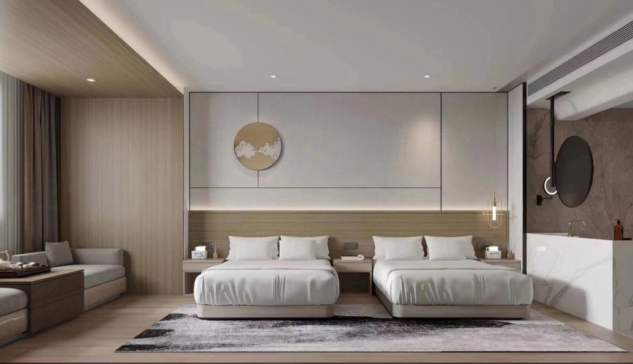 以下是按照效果图装修施工还原后的客房实拍图