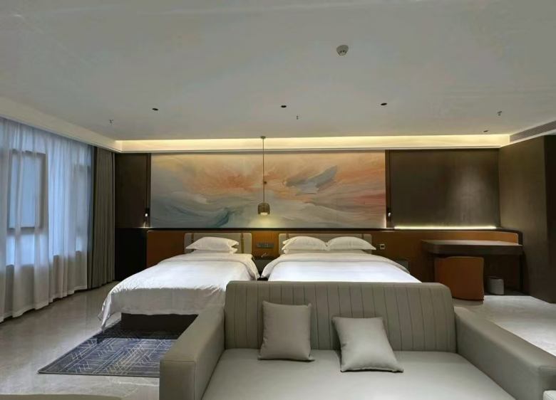 2025年开工不久,西安博菲克酒店家具定制工厂年底承接的商洛尚客酒店配套家具工程圆满交付,公司领导和项目经理第一时间抵达现场,和客户一起进行收尾工作前的最后验收。