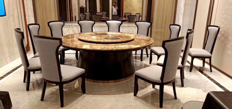以下是博菲克家具厂为西安春秋餐厅订做的一批餐桌椅现场安装图。