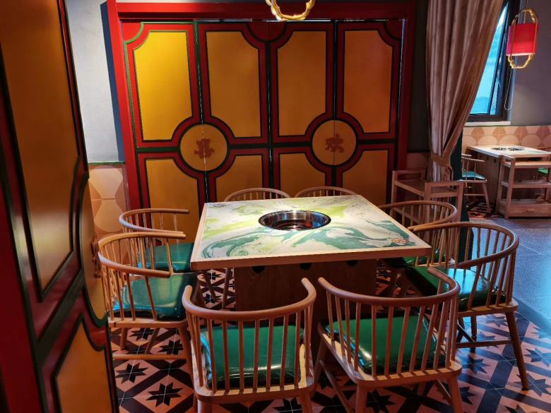 为曲江欢喜记火锅店定做的火锅桌椅,与其店面装修环境融为一体,带给人一种特别温馨的感觉,瞬间就能带给客户一种翱翔在草原上的气息。