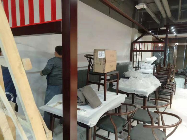 在跟客户确认了材质和尺寸之后,工厂生产部就安排了加工,不到20天的时间,餐桌椅已经完工。客户到厂验收后,厂里一刻也不敢耽误,即刻安排车辆和安装师傅前往现场进行餐桌椅摆放。