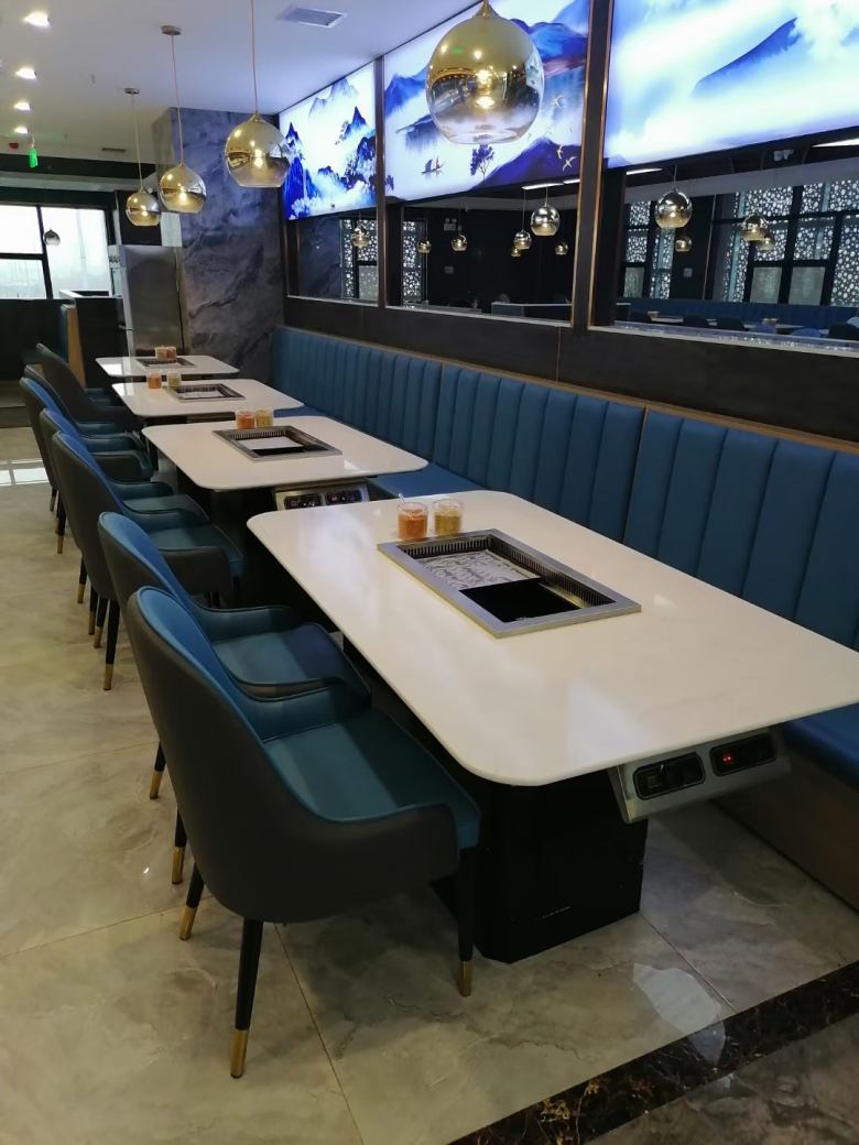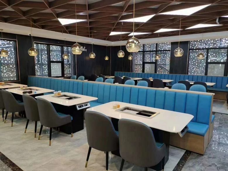 西安某餐厅涮烤一体桌卡座沙发交货实拍