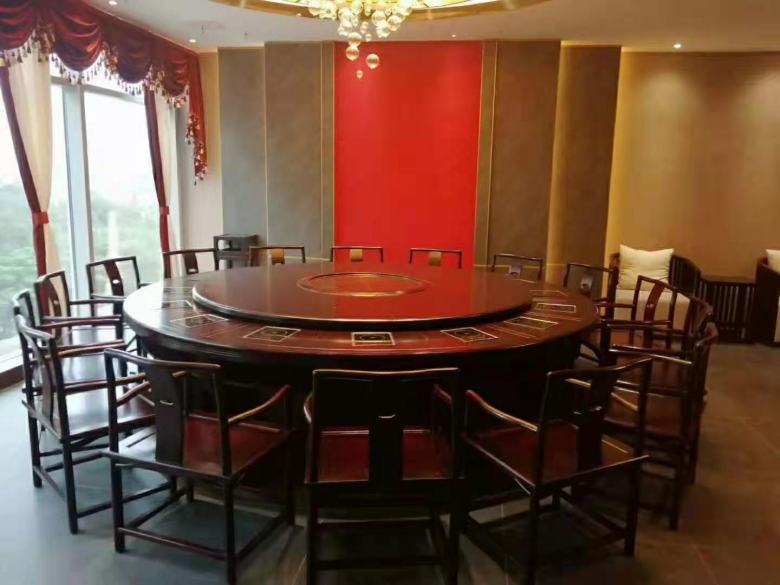 这家名叫汤城火锅店的装修风格为中式风格,因此,在搭配火锅桌椅的时候,设计师推荐使用中式实木火锅桌,使得整个火锅店充满了浓浓的中国风。